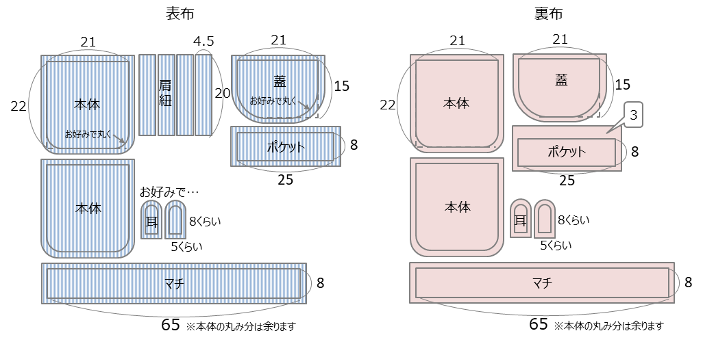 リュックの型紙・パターン 実物大1ページ目 ぬくもり。