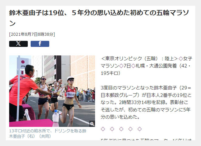 けが乗り越え挑んだ五輪、マラソン女子・鈴木選手 - 日本経済新聞。