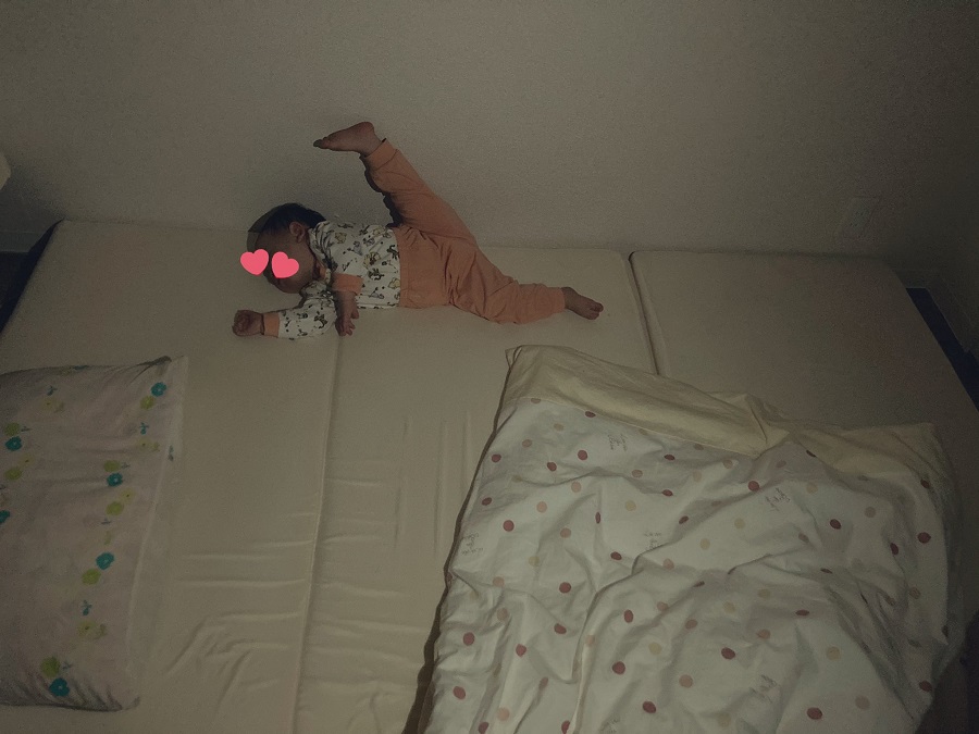 深夜のかかと落としスマイル育児ダイアリー生後3ヶ月から睡眠が4,5時間のスパンになって ちょっとまとまって寝れてきたぞと思った矢先に鮮魚みたいに深夜にビッタビタと🥹 本人は寝てるんです。 放っておくと起きる。私はビタビタの音で起きるんです。 この。