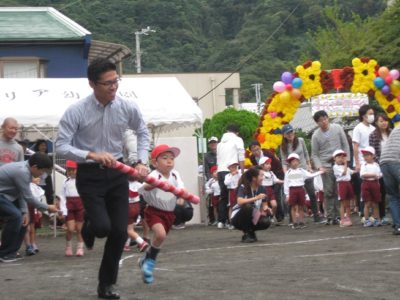 上田名 うえだな 幼稚園 » 運動会の見どころ② No.5『アイスクリームリレー』 年長児親子競技。