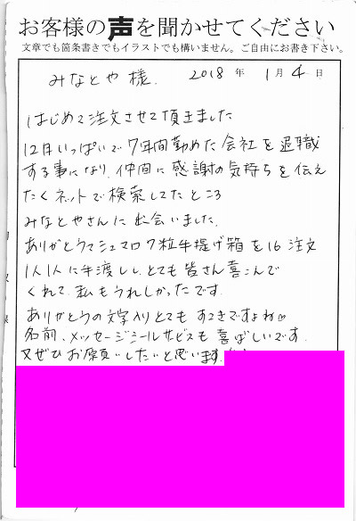 退職あいさつのお客様の声 87『ありがとうの気持ちをより伝えることができて感謝しています』 - みなとや。
