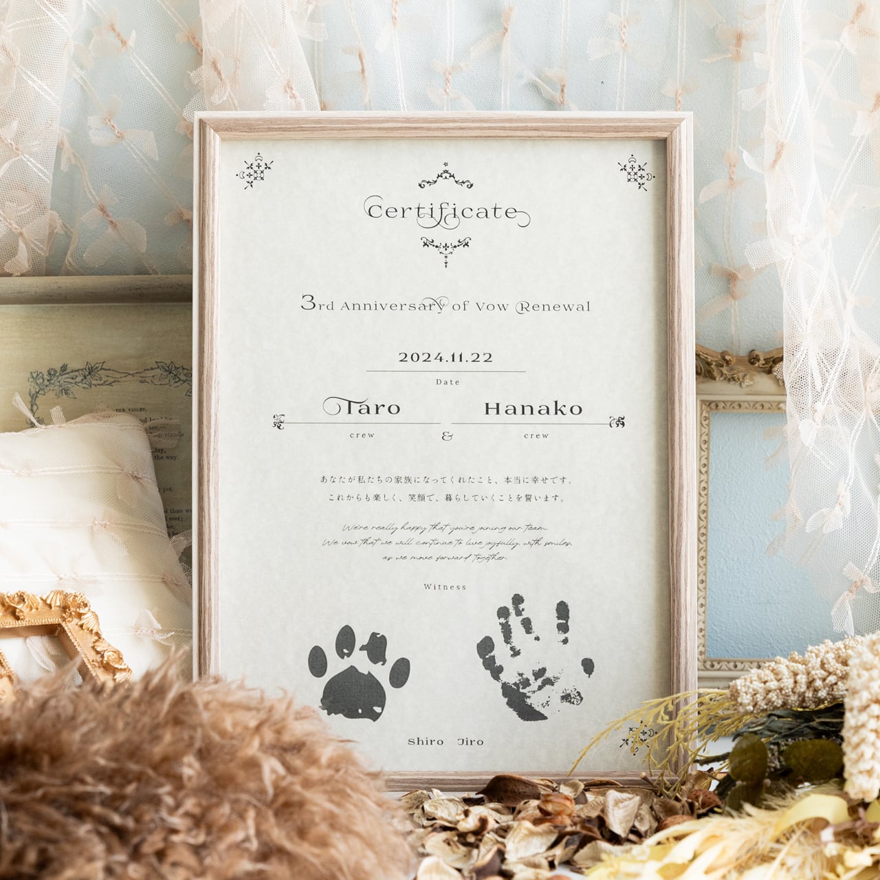 額縁&2枚セット 証書⌇うちの子記念日, パパママ記念日に 家族の記念, 手形, うちの子, 誓約書『日々、祝ぐ』cotohogu ことほぐギフト・インテリア 撮影小物。