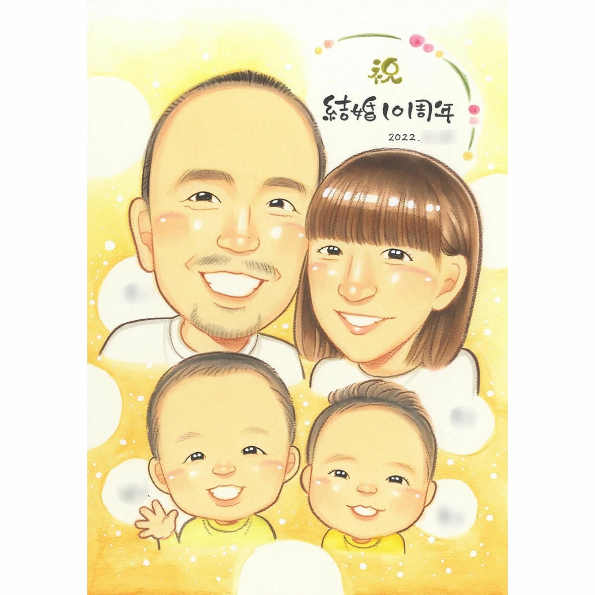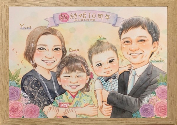 家族の記念似顔絵で祝う結婚記念日 贈り物にもぴったり 温もりが伝わる似顔絵ギフト 結婚10周年から60周年まで 結婚記念日に贈るあたたかな家族の似顔絵プレゼント記念に残る一品 家族の輝く思い出を似顔絵に 結婚記念日のギフトにオススメ。
