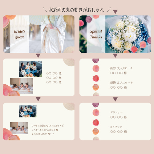 iPhoneで作る オープニングムービー「ふんわり ゲスト・自己紹介付き 」テンプレートでおしゃれなムービーの作り方 結婚式。