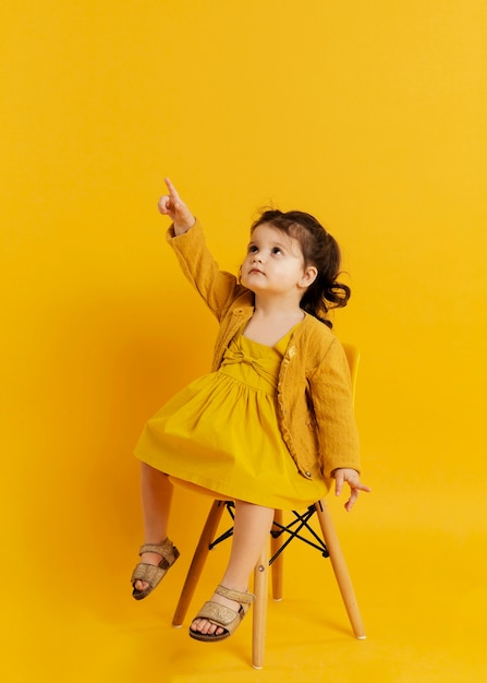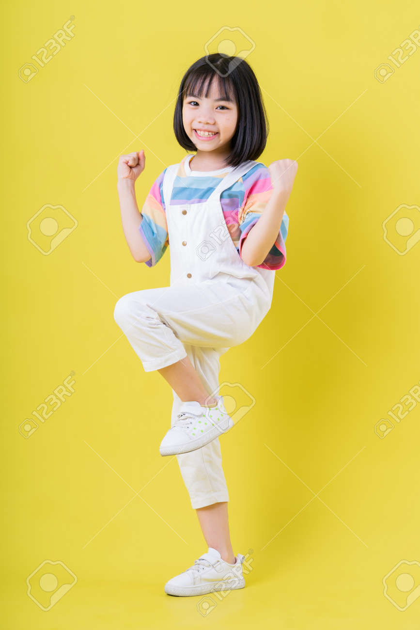 黄色の背景にポーズをとってアジアの子供の全身画像の写真素材・画像素材 Image 183973796。