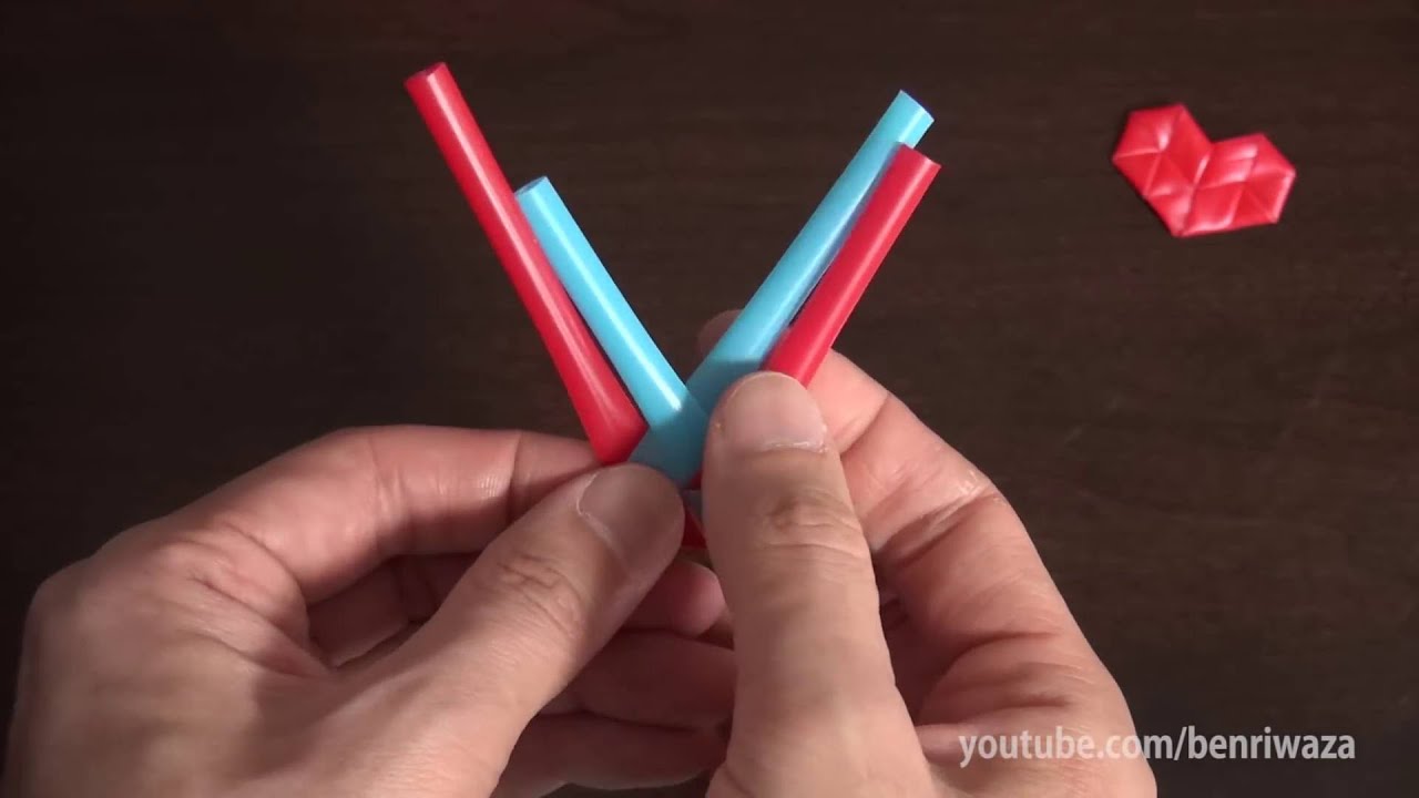 DIY ストローでハートを作る折り方 How to make a straw heart 100均アイテムDIYライフハック動画 字幕あり-YouTube。