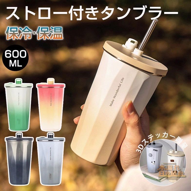 名入れ タンブラー ストロー ストロー付き ストロー付きタンブラー 520ml 3way 蓋付き 持ち運び 水筒 トラベルタンブラー 真空二重構造保温 保冷 大容量 真空断熱 タンブラー ステンレス サーモ 保温 保冷 洗いやすい シンプル 名前入り -mokumoku - プレゼント。