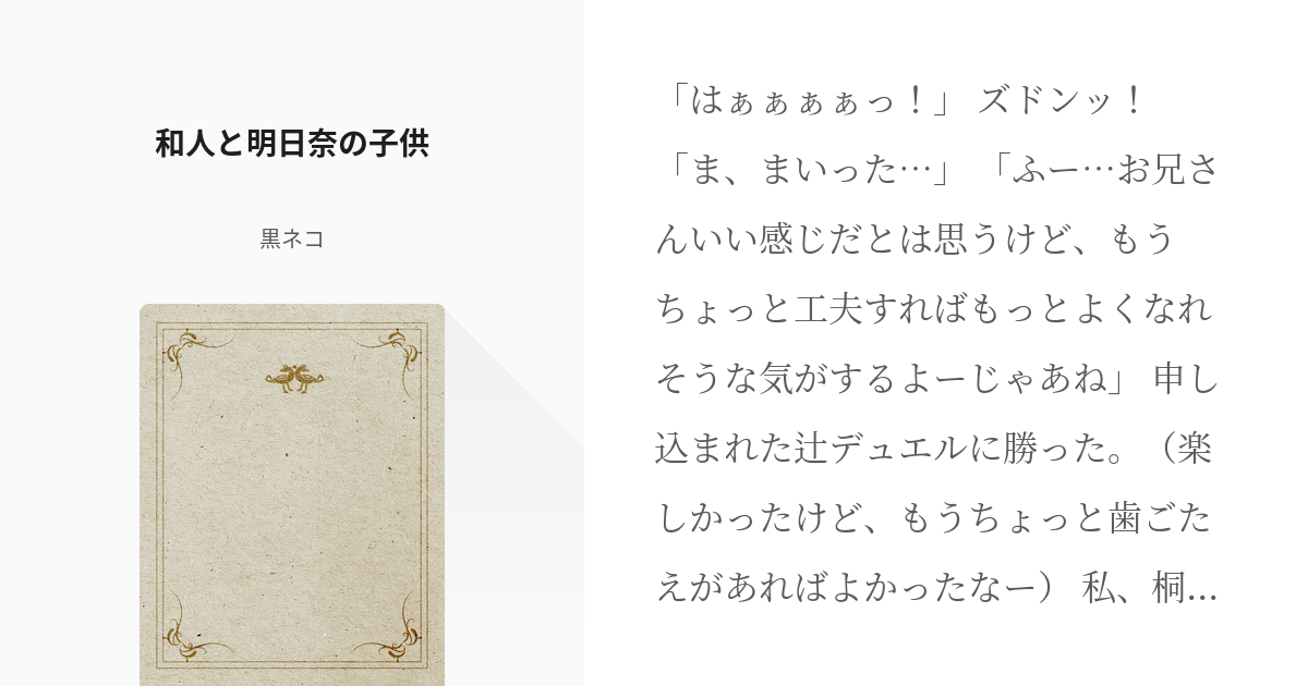 2 和人と明日奈の子供伝承 - 黒ネコの小説シリーズ - pixiv。