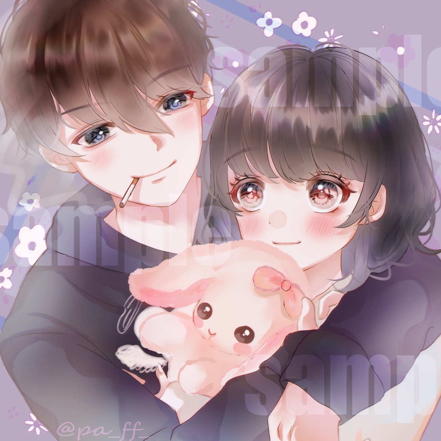 まめぱん on X: "カップルペア画のご依頼でした!! 🧸💖🍁🎀まめぱんの依頼箱有償依頼ペア画カップルhttps:t.co Gw3SXr3Ipq"X。