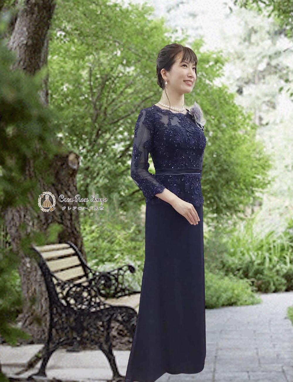 桂由美 フォーマルドレス レンタル 結婚式 11号-13号 紺 ツーピース 274-74634N 母親。