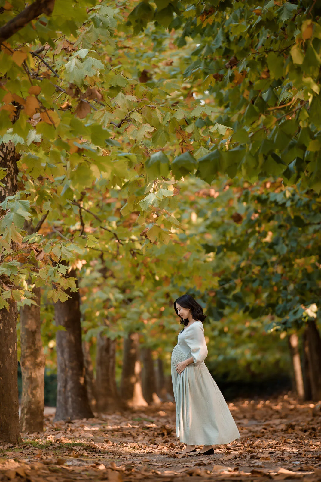 リラックスして自然な様子」紅葉の中でマタニティフォトの撮影OurPhoto アワーフォト。