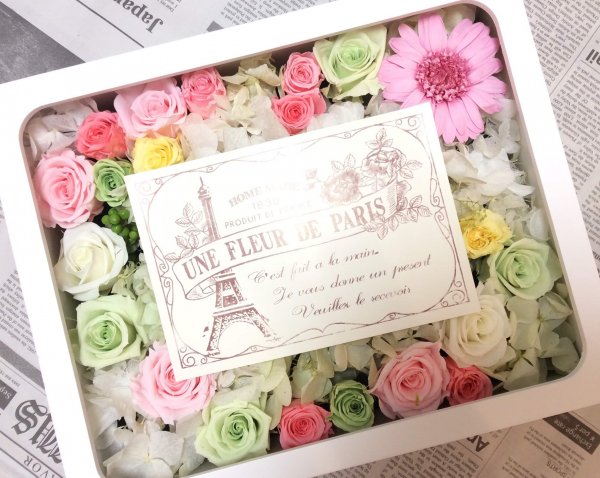 写真立てを手作りで!思わず見つめるおしゃれなプレゼントにプリザーブドフラワーのアレンジ東京・表参道・青山プリザーブドフラワーアレンジメント教室「花学校」初心者でも1回でおしゃれに手作りする!お花レッスン。