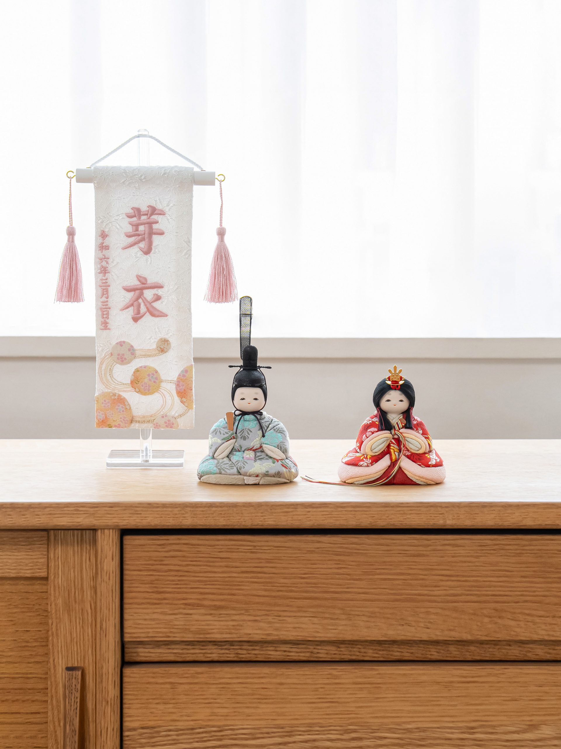雛人形 ひな人形 吊るし飾り お名前旗 P80652クルクル可愛い♪刺繍でお名前と生年月日が入ったお名前飾り☆初節句職人手作りの 秀光人形工房 五月人形・鯉のぼり・おひなさま人形工房。