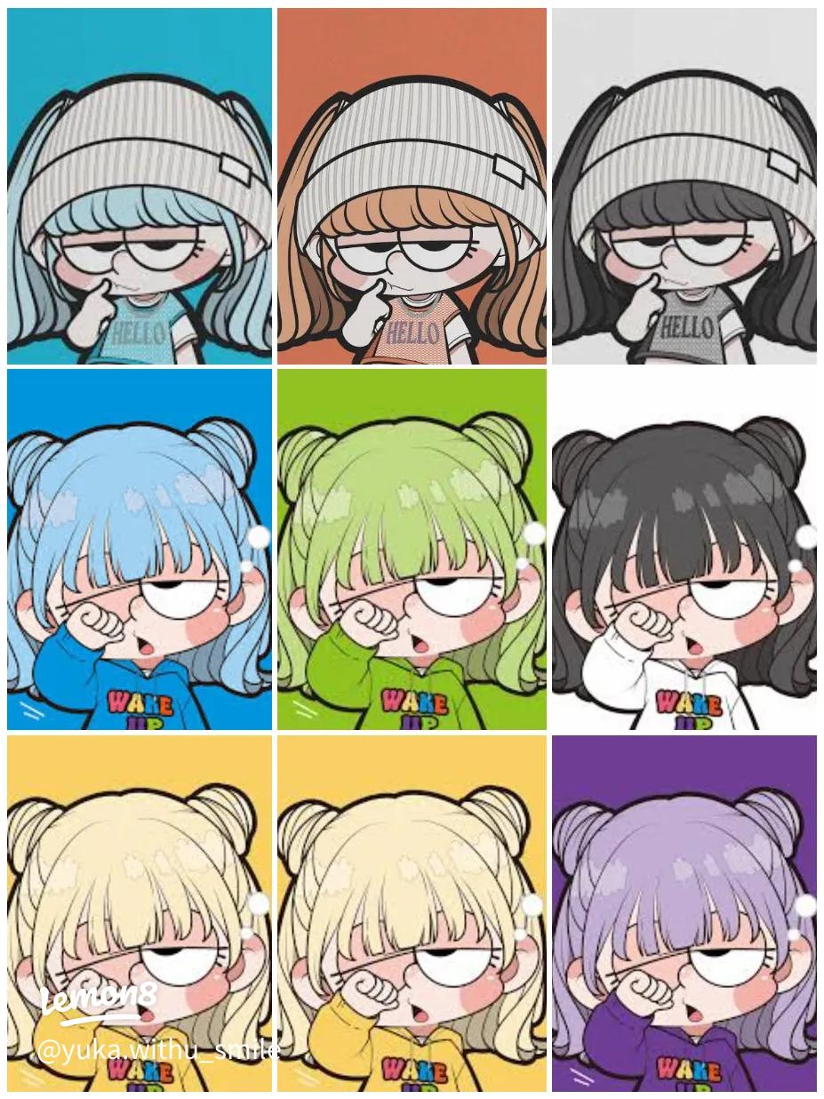 PAIR👱♀️👩 イラストアイコンアニメなかよし半目キャラクターペア夏ツーショット友達cartoonkawaiiart。
