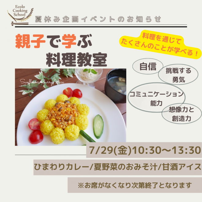 夏休み企画キッズ食育講座ー親子料理教室ー 2022年7月29日 東京都- こくちーずプロ。