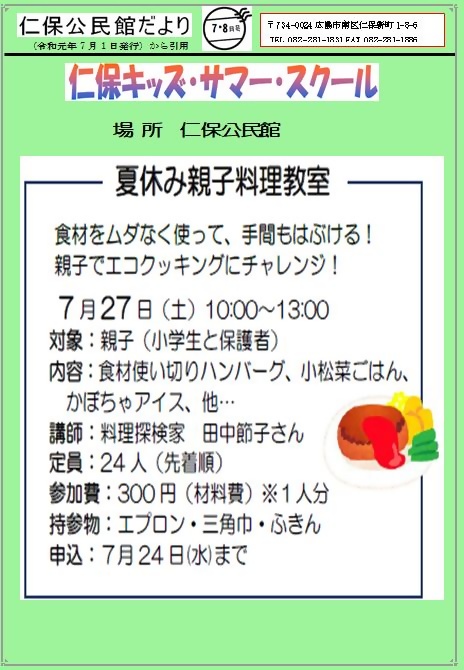 夏休み親子料理教室 仁保公民館広島県広島市南区イベント。