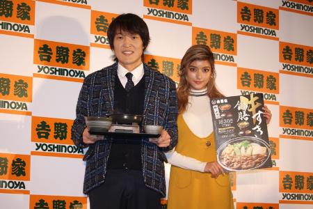 千原ジュニア、結婚後初イベント!ローラが茶化して照れ笑い「牛すき鍋膳」新CM発表会3 Chihara Junia Laura。