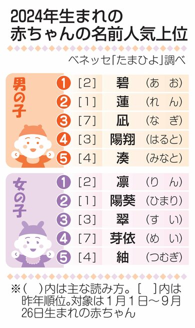 男の子「碧」、女の子「凛」が1位・2024年1~9月生まれの赤ちゃんの名前 五輪影響?「藍」急上昇新潟日報デジタルプラス。