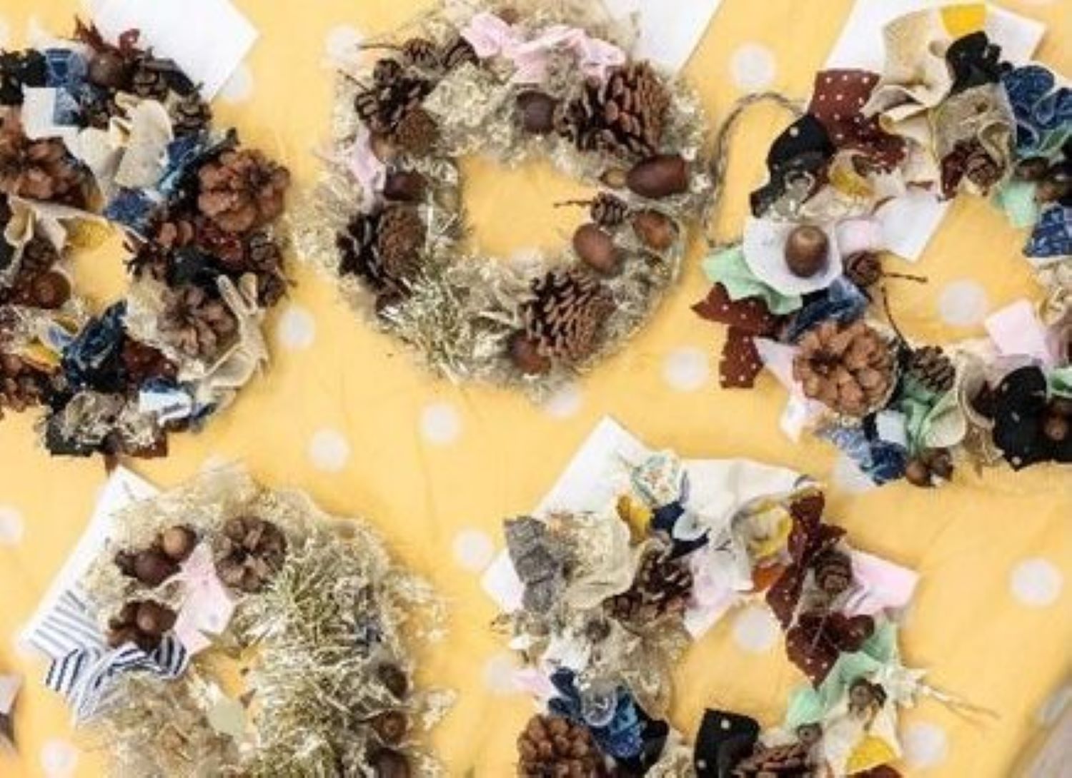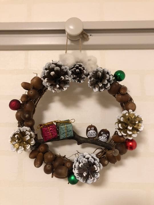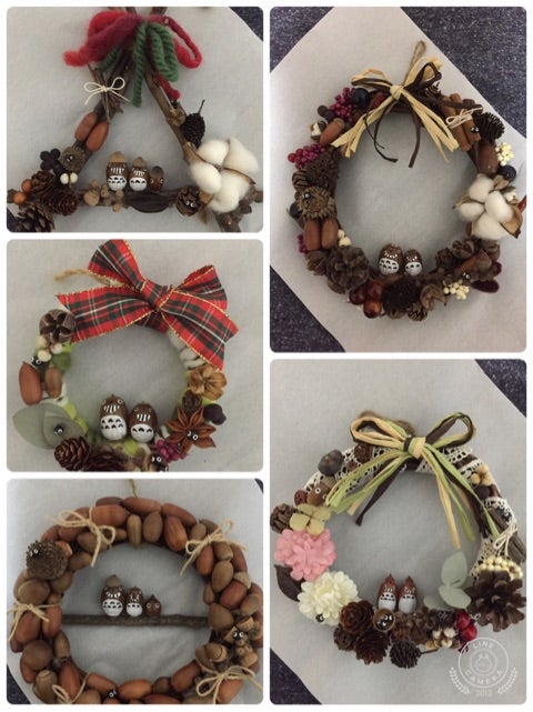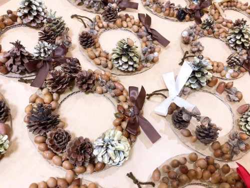 どんぐりや松ぼっくりのクリスマスリースせいさくっと。