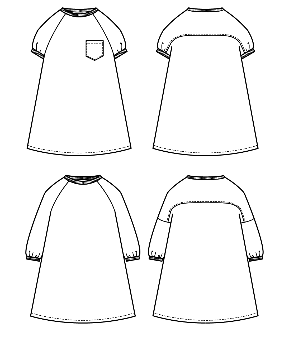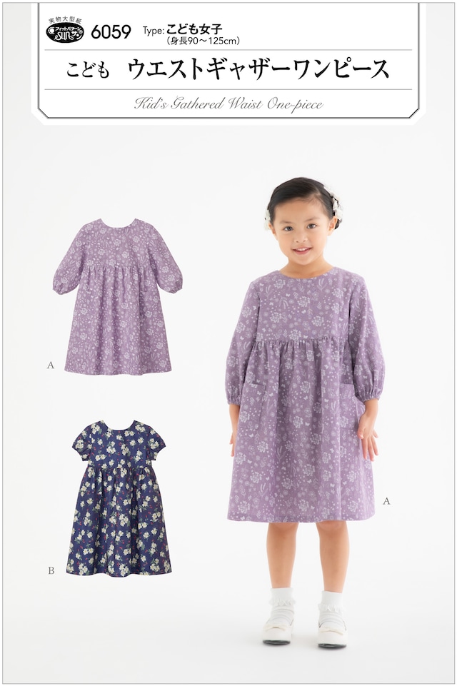 子供服型紙KP-127 Aラインワンピース - 子供服、婦人服の型紙パターン 型紙販売のCandy Floss。