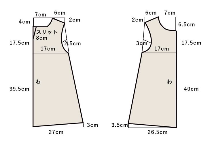 ノースリーブAラインワンピースの製図・型紙と作り方nunocoto fabric。
