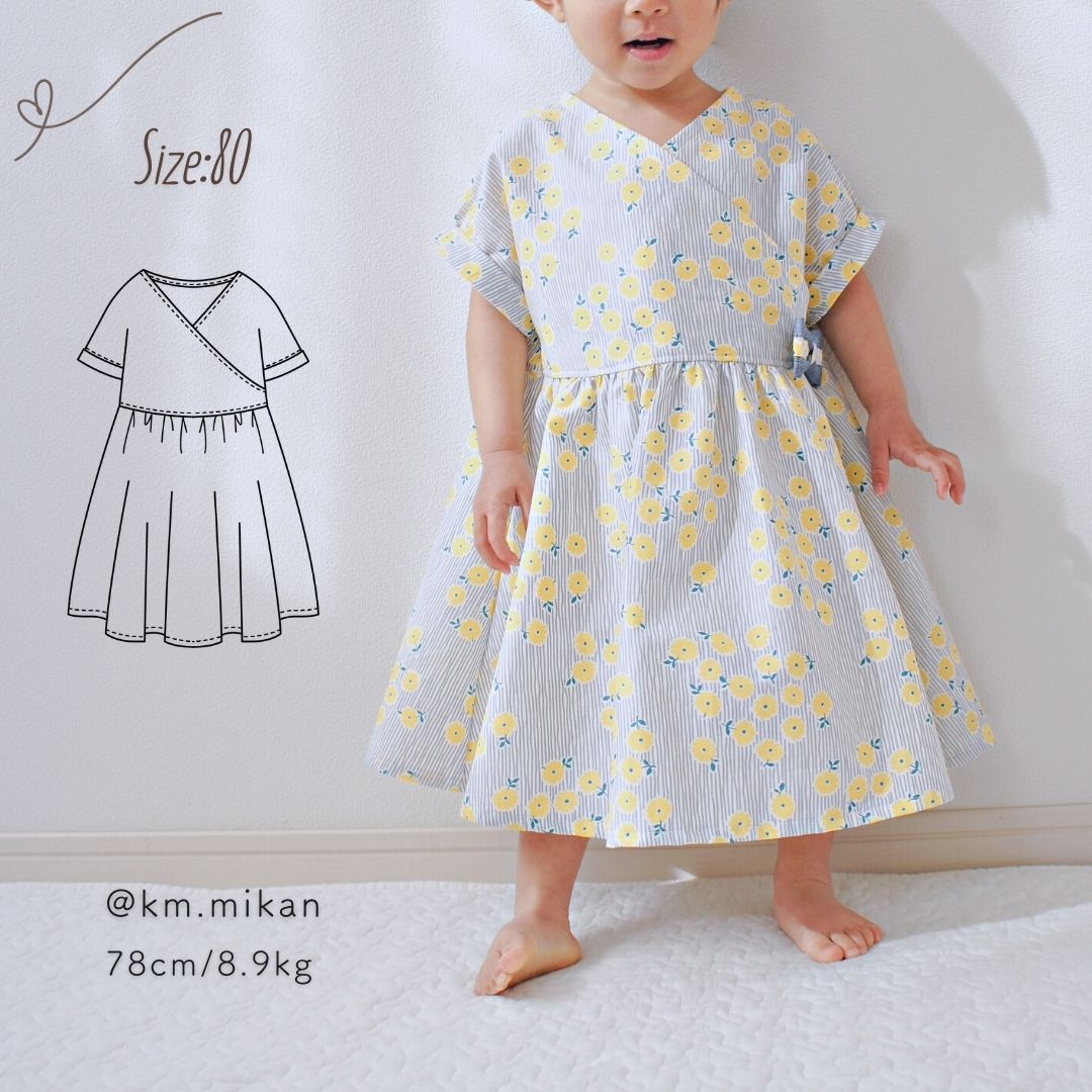 カシュクールワンピース子供服の型紙・パターンショップのソーイングママ。