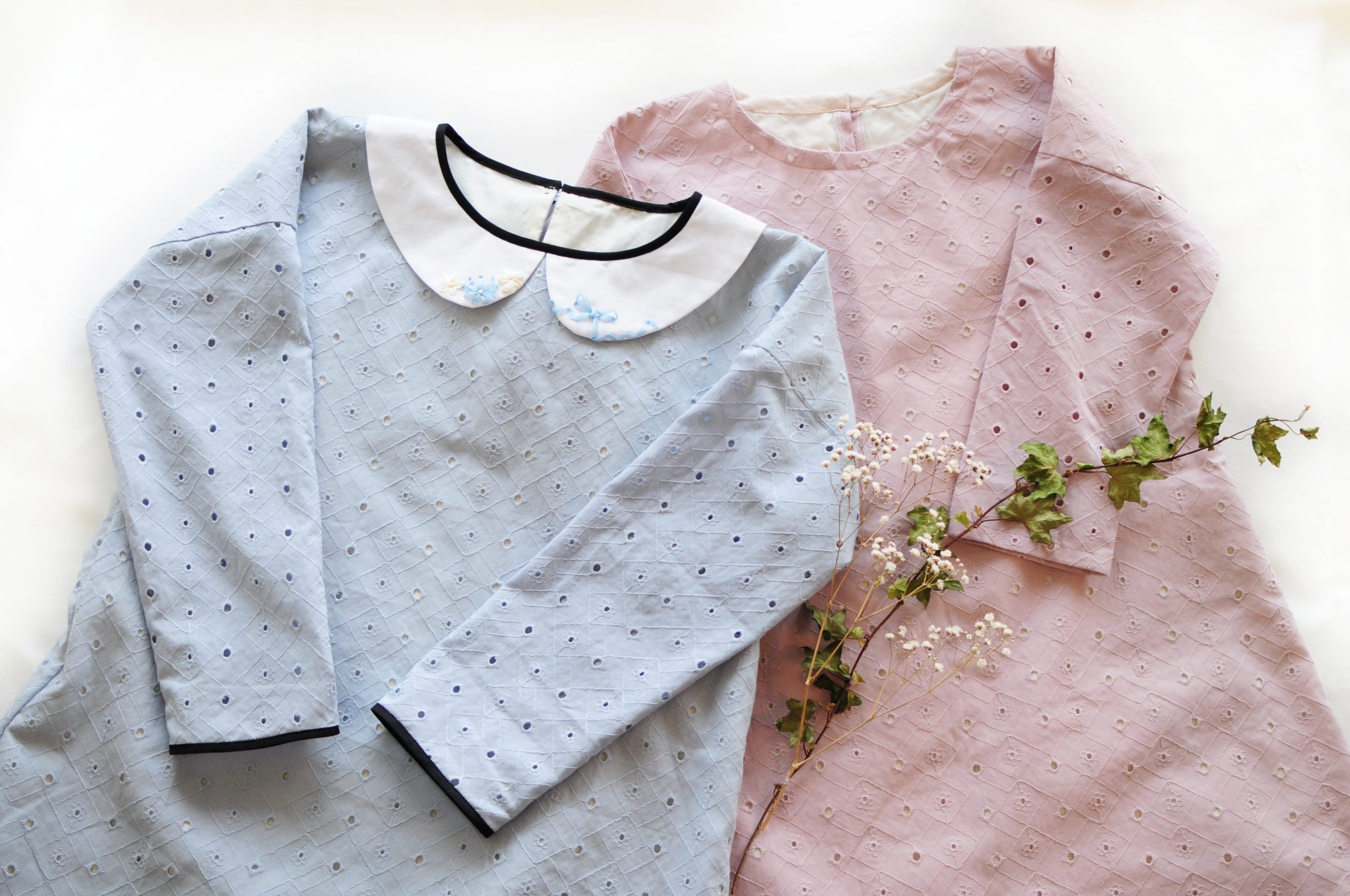 簡単衿付きワンピース! シェリーワンピ 型紙 作り方 女の子服 80-130。