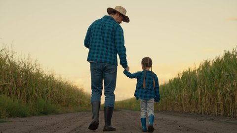 農家の父は、トウモロコシのフィールドで彼の小さな娘 と一緒に実行して遊ぶ。幸せな家族、子供の父親が一緒に手をつないでプランテーションを歩く。農家の家業。元気なパパの娘」の動画素材 ロイヤリティフリー 1089205043Shutterstock。