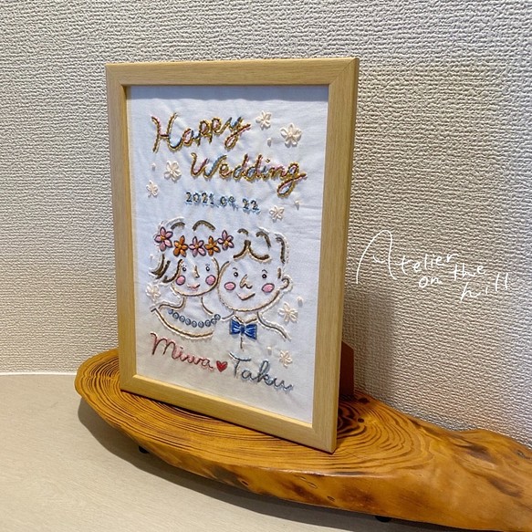 A4似顔絵刺繍ウェルカムボード 結婚祝い 綿婚式 結婚2周年記念に♡ 「ふたりの記念刺繍 together」 ウェルカムボード Atelier onthe hill 通販 12615645Creema クリーマ。
