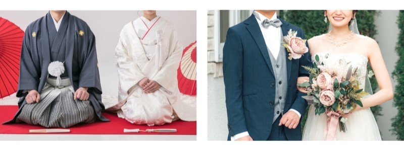 和装」と「洋装」の結婚式それぞれの特徴やどちらも着用する方法を紹介。