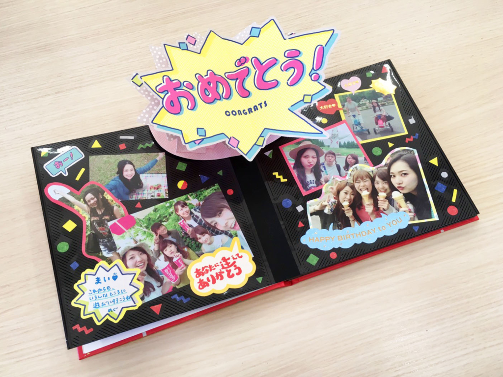 写真もメッセージカードも簡単に作れる!友達の誕生日に贈るポップで元気な寄せ書きアルバム 手作りアルバムアルバムキッチン。