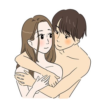 くっつく男性とドキドキする女性のイラスト素材95843210- PIXTA。