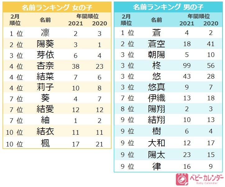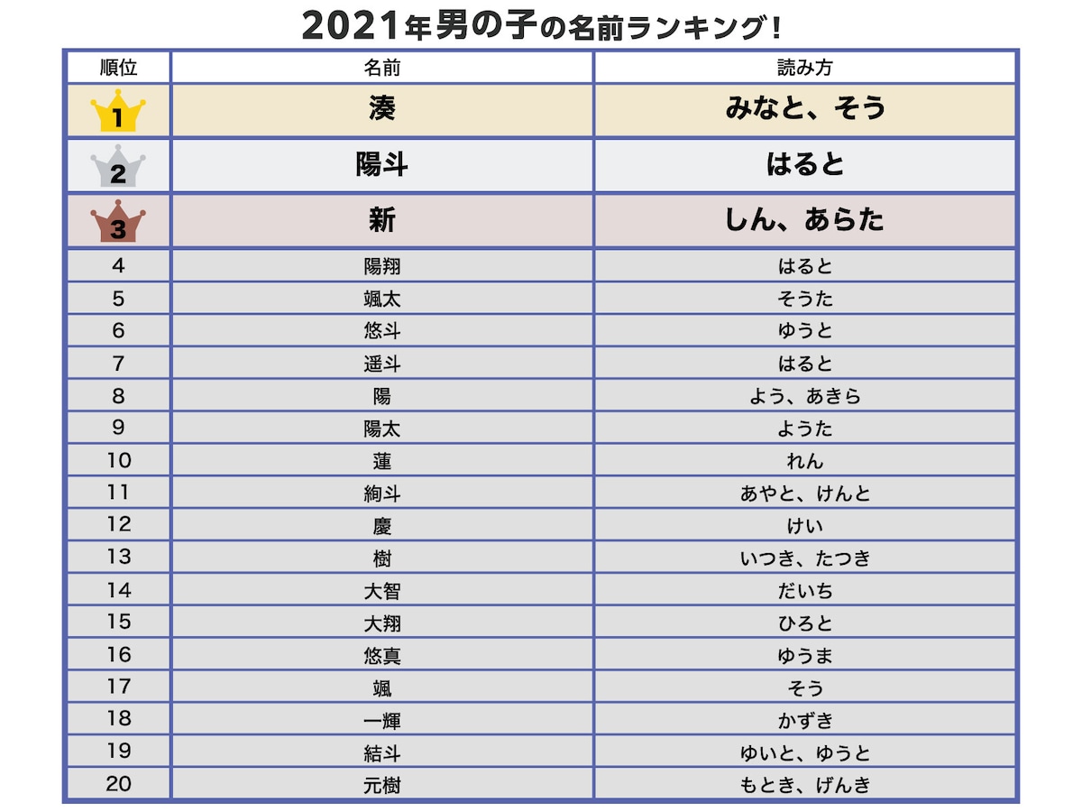 男の子の名前ランキング人気TOP100 2021年最新版赤ちゃんの命名・名づけAll About。