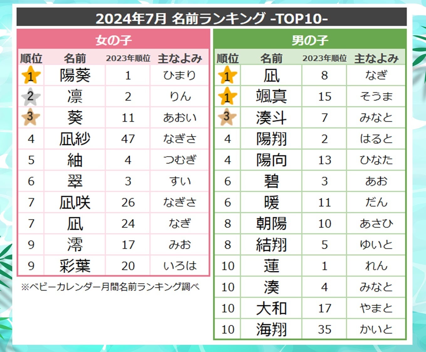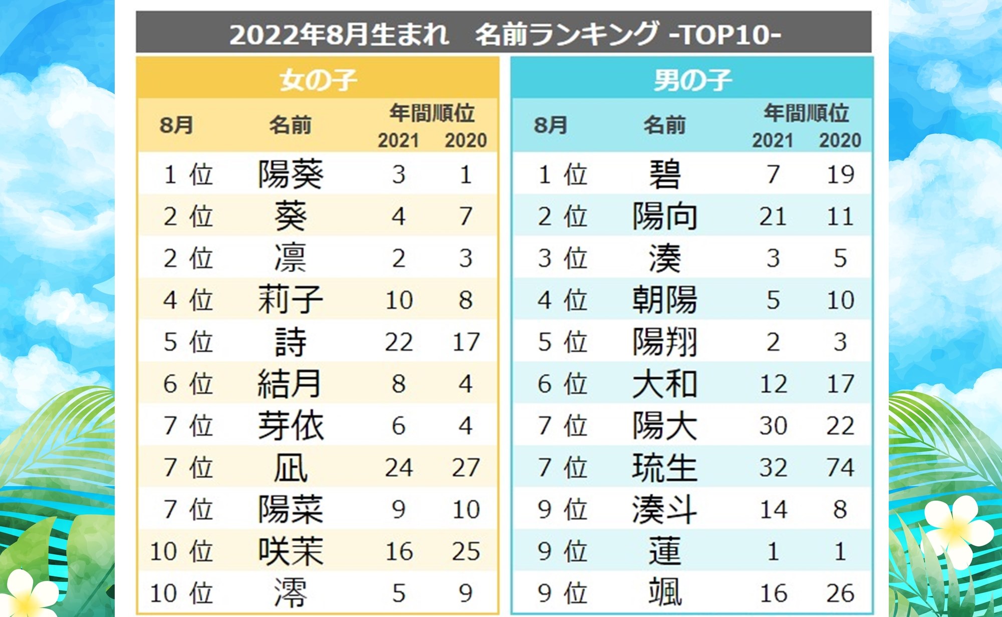 発表 2022年赤ちゃんの名前ランキング「碧」が初の1位に。先行きが不安定な今、名づけに込めた親の想いとは?たまひよ。