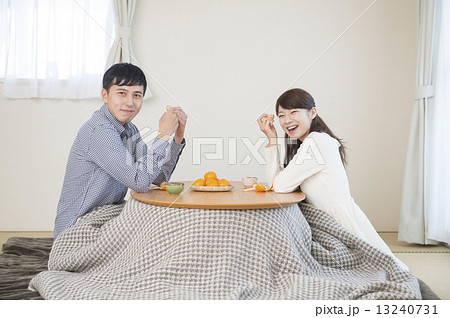 こたつに入るカップルの後姿 11017013655 の写真・イラスト素材アマナイメージズ。