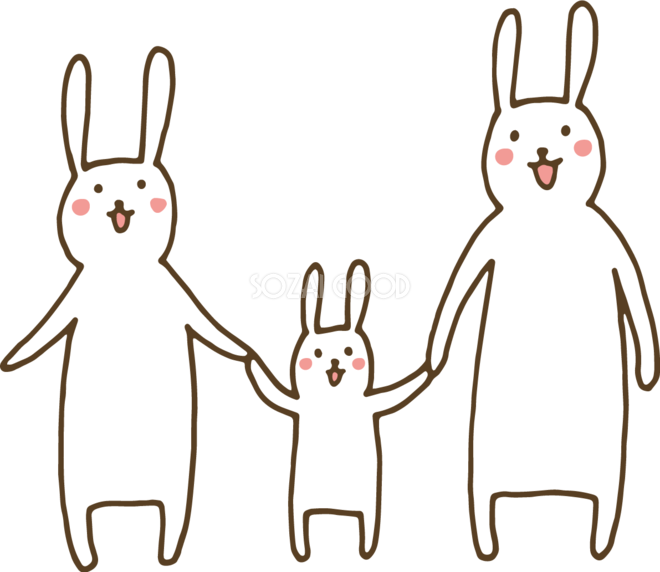 手を繋ぐ親子のうさぎ かわいい2023 卯年イラスト無料 フリー87645素材Good。