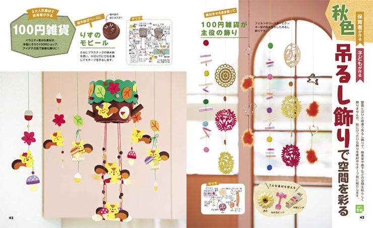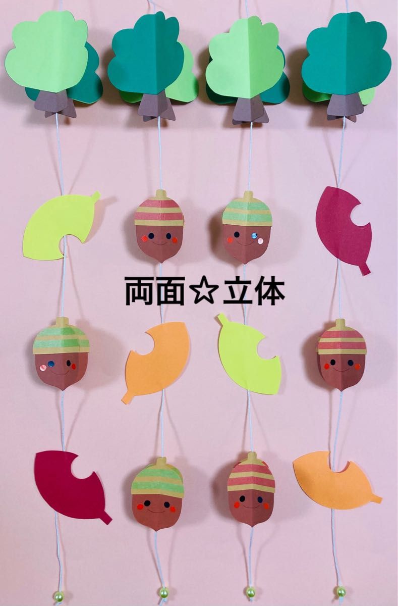 壁面吊るし飾りガーランド両面秋9月どんぐり落ち葉幼稚園保育園。