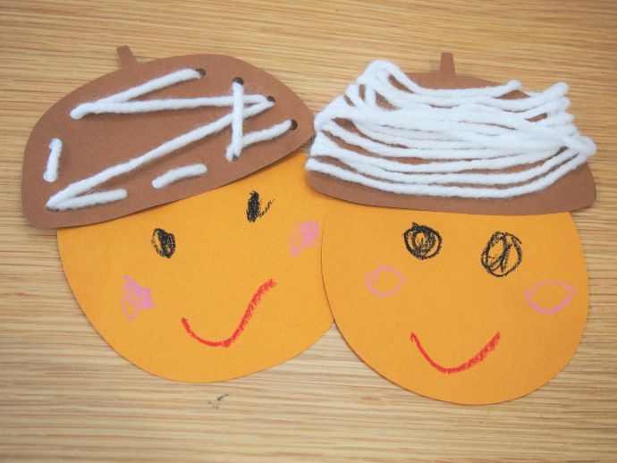 保育園 11月製作 どんぐりアイデア3種 簡単折り紙・毛糸・クラフト紙でかわいく作ろう保育士のお仕事静岡。