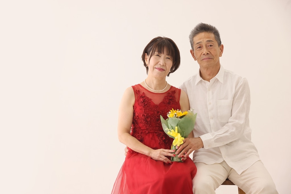 記念写真 大人気の撮影!ご夫婦で撮る還暦写真~和装の着物・洋装のタキシード&ドレス・私服~それぞれの良さをご紹介トータルフォトスタジオトマト栃木県小山市の写真館です。七五三、お宮参り、成人式はトマトへ。