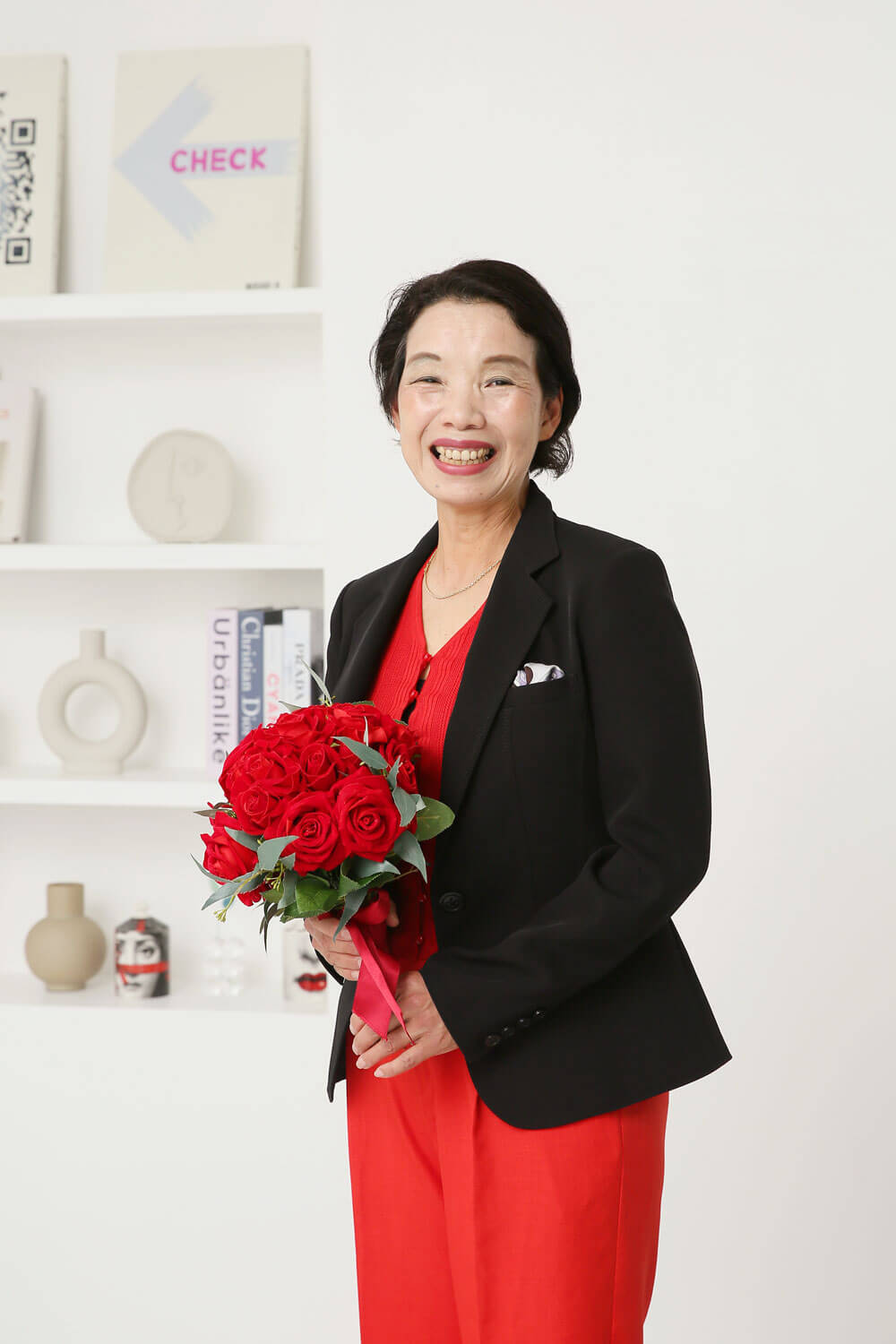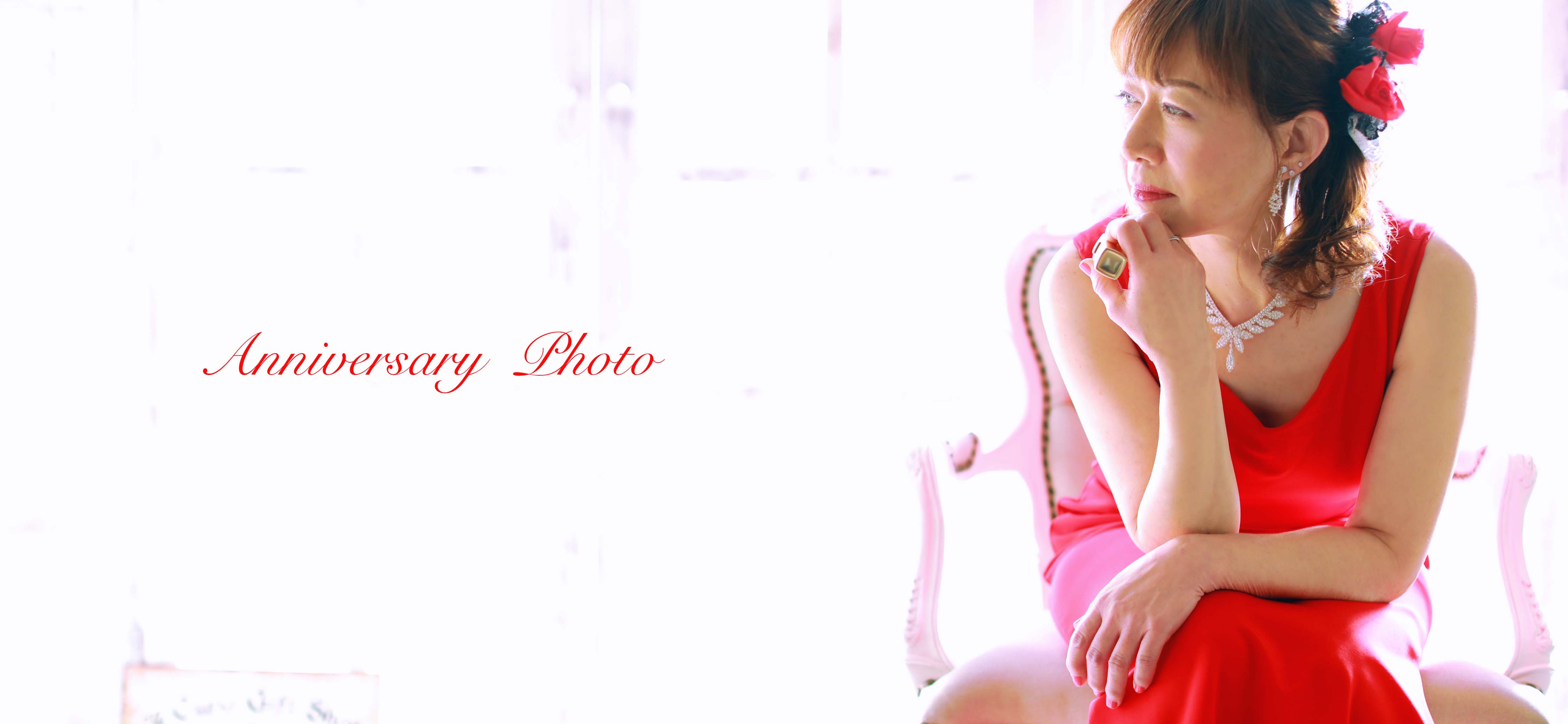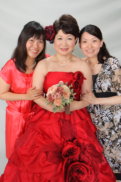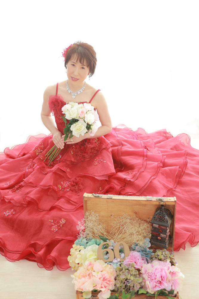 還暦写真撮影 フォトスタジオエヌプラス 還暦は赤いドレスでおしゃれに。