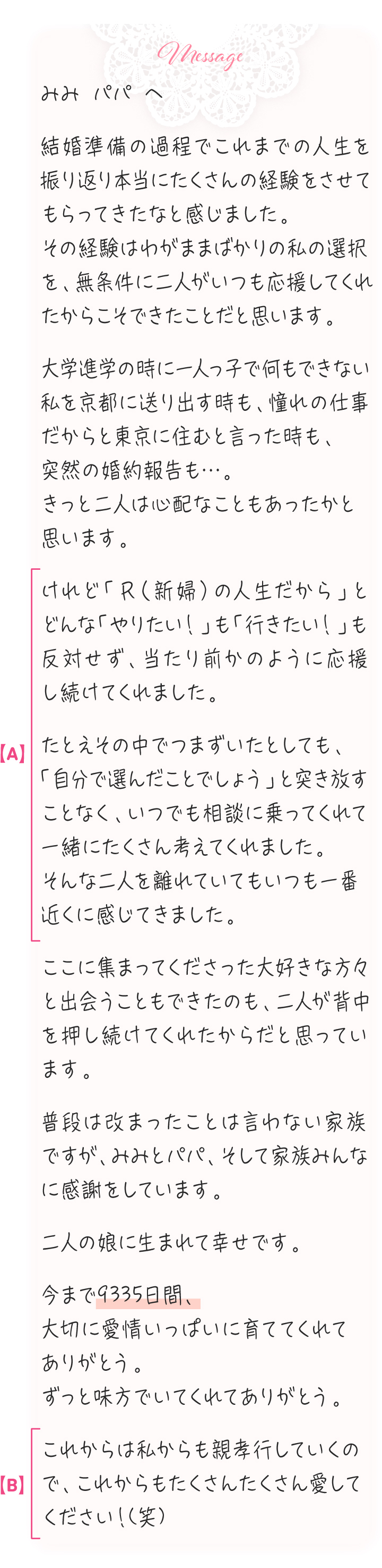 プロ直伝 花嫁の手紙を素敵にするテクニック 事例・書き方札幌コンシェル。
