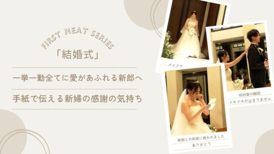 ファーストミートの際に花嫁から手紙を読んだりメッセージを伝えることはありますが、新郎からの手紙や感謝 の言葉を伝えることもあります。その伝え方も花嫁の背中に語りかけるように顔を合わせずにすることも。 そして最後にお互いの顔を初めてみる・ きっと様々な。