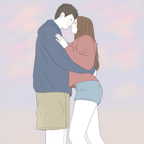 安らぎを感じるカップルポーズイラスト・フリー素材なら「シンテリ」。
