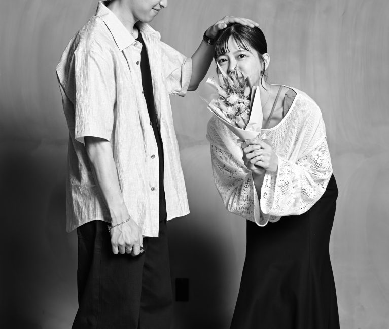 カップルフォトで人気!やさしさが伝わる「頭ポンポン」ポーズ - 熊本のレンタル撮影スタジオ C STUDIO。