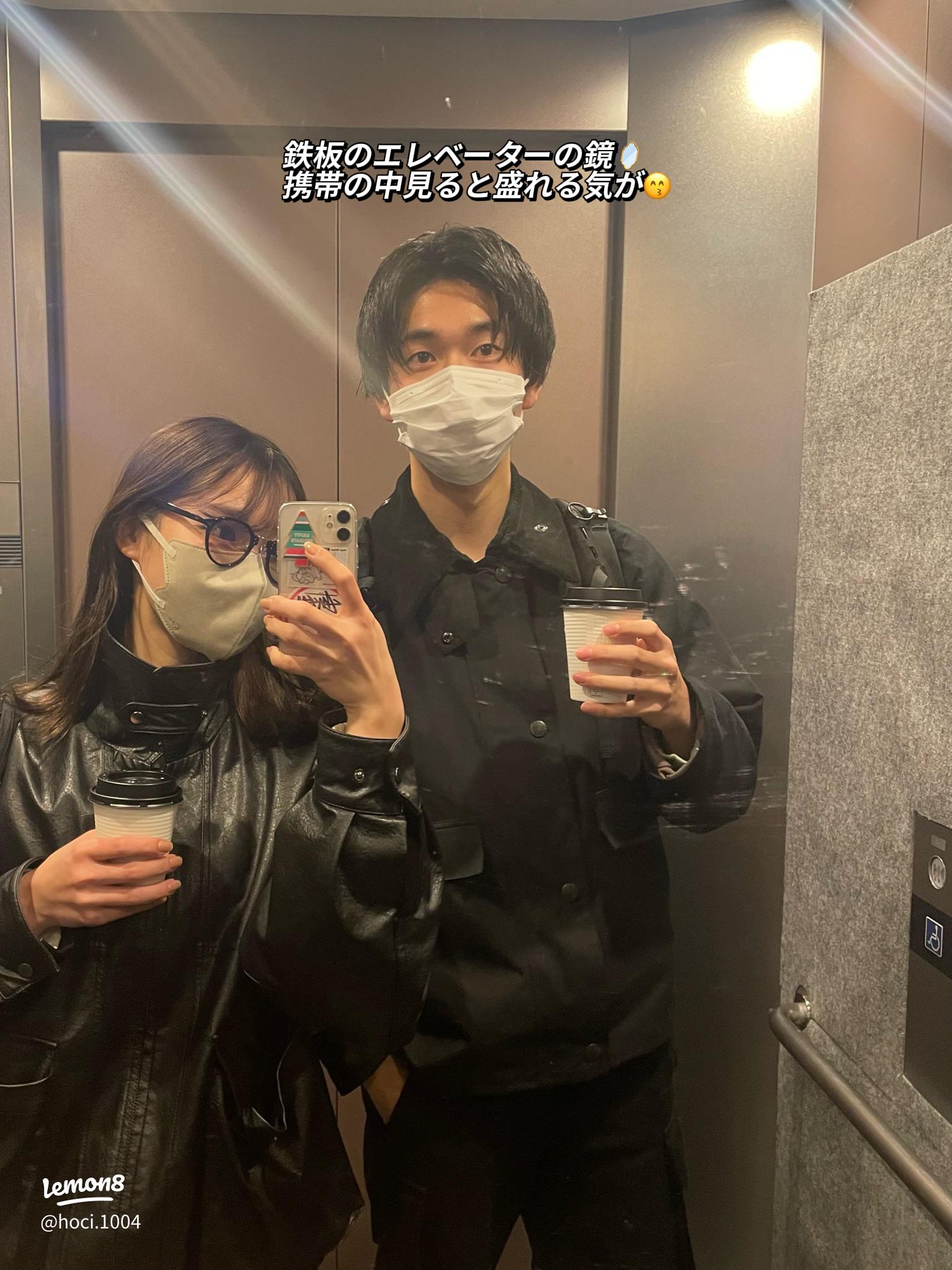 こういう写真、綺麗な鏡で撮れたことない 笑 カップルカップルフォトカップルグラムカップルコーデカップルの日常カップル写真カップルデート同棲カップル年の差カップルブラックコーデシミラールック。