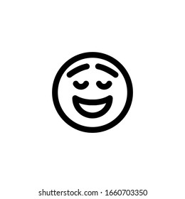 穏やかな絵文字 ほっとした顔文字 目を閉じて笑顔で穏やかな顔 手描きのフラットスタイルの絵文字Premiumベクトル素材。