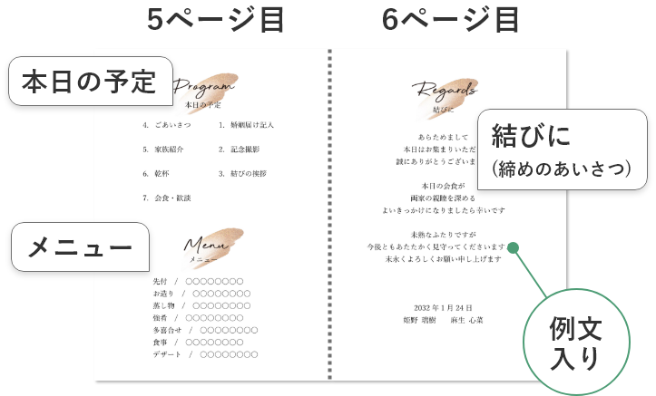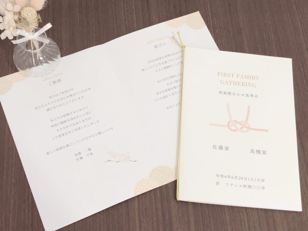 フルオーダーデザイン 顔合わせのしおり 両家顔合わせ 食事会。