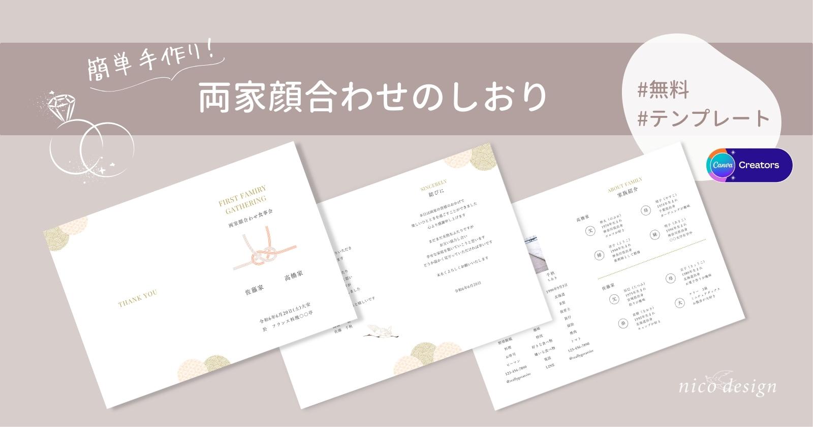 無料テンプレート 「両家顔合わせのしおり」を手作り!nico designのブログ。