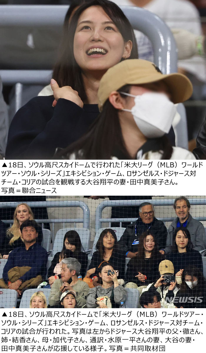 MLB:大谷翔平の妻・真美子さん、義母と一緒に高尺ドームで観戦-Chosun online 朝鮮日報。
