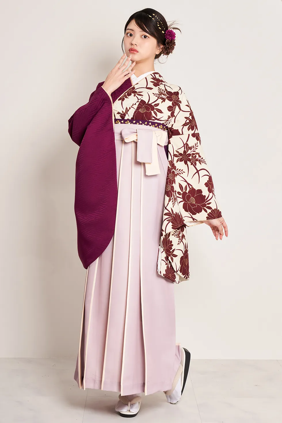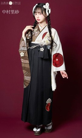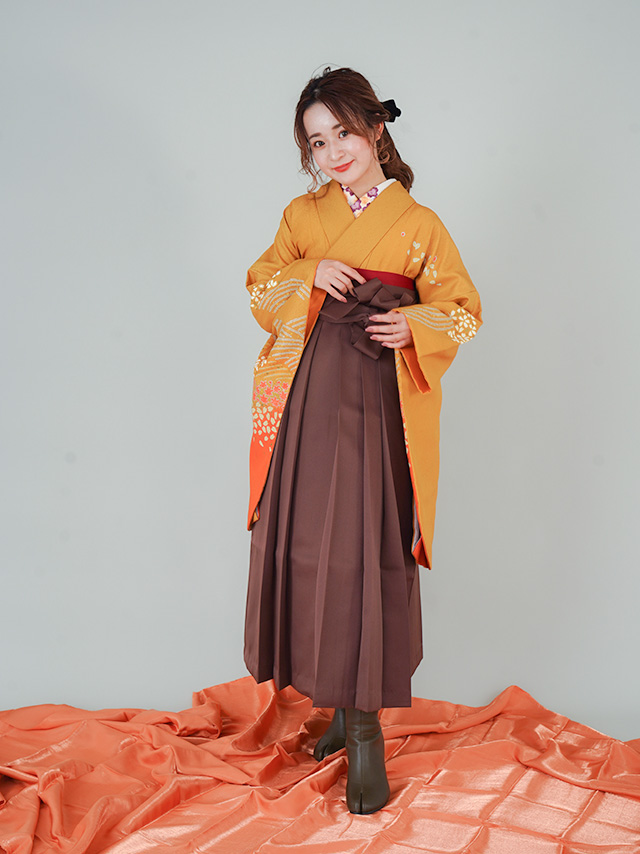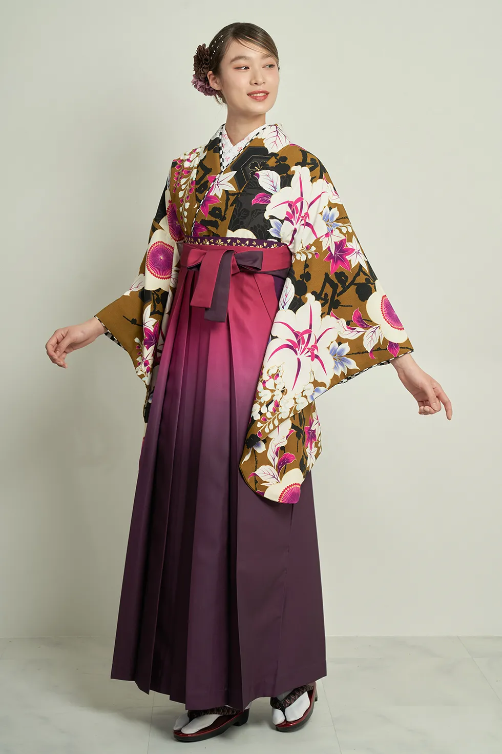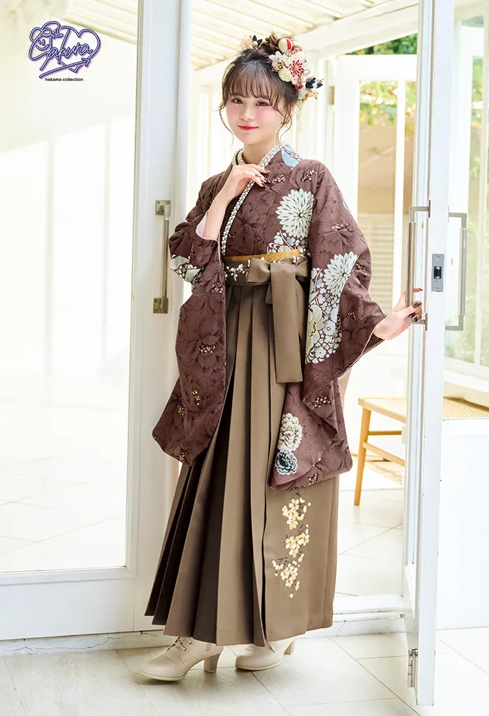 JAPANSTYLE×中村里砂ブランド袴 くすみカラー古典 ブラウン ダスティーカラー 梅柄 おしゃれ 通販可 R24049成人式振袖・卒業式袴レンタル・前撮りなら TAKAZEN 表参道大阪 梅田・心斎橋・堺 兵庫 神戸旧居留地・姫路 奈良・橿原の店舗へ。